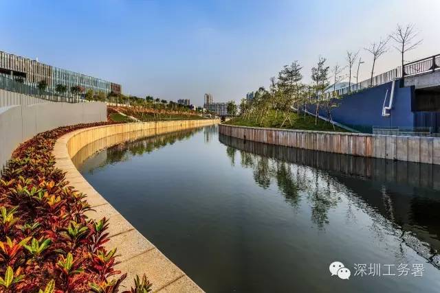 月湾河水廊道沿月亮湾大道,自北向南衔接双界河水廊道,桂湾河水廊道和前湾河水廊道,总长约6150米,主槽宽20米。项目一期工程于2014年6月1日开工,已于2016年1月26日完成竣工验收并通水。
