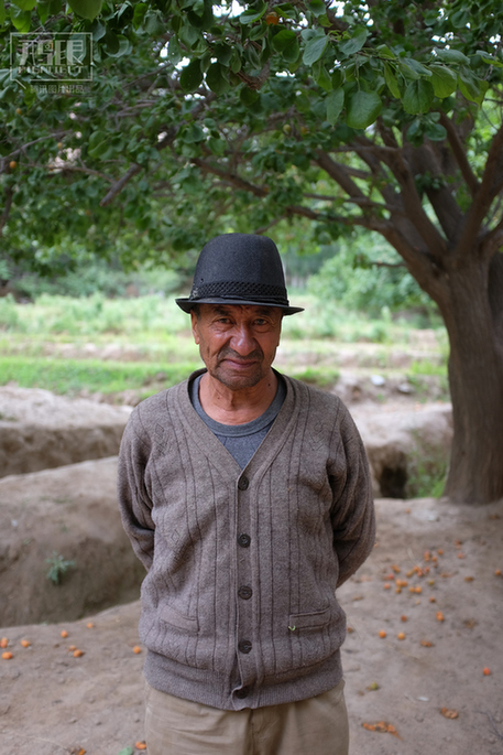 一位塔吉克老人站在家门口前的杏树下。他年轻时曾是乡里的医生,退休后又做起了牧民。