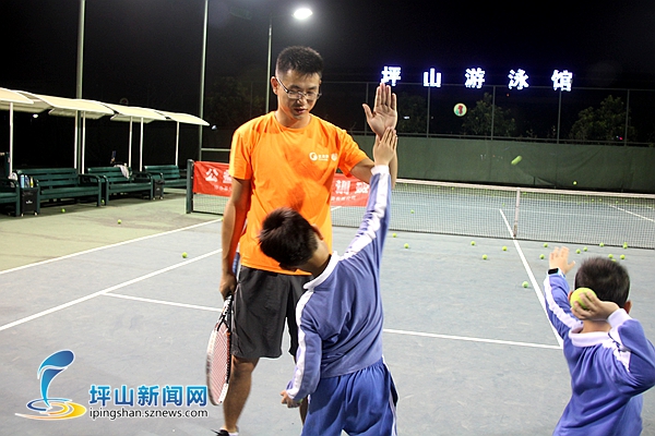 深圳新闻网坪山讯(记者 杨涛 通讯员 李爽)“我感觉好好玩,下一周我还要来。”11月18日下午六点,坪山新区大工业区体育场网球馆里欢笑声一片,30名坪山中小学生齐聚这里,在网球教练的带领下尽情挥洒汗水。