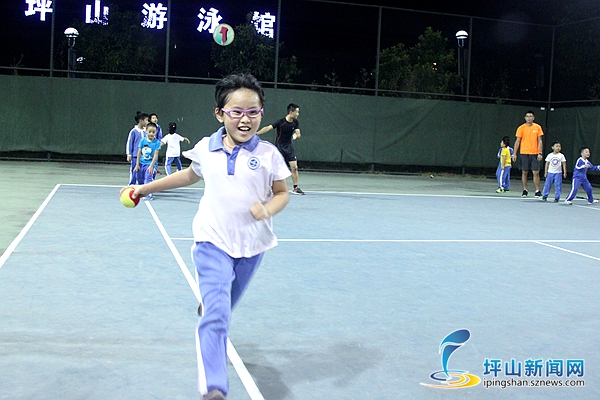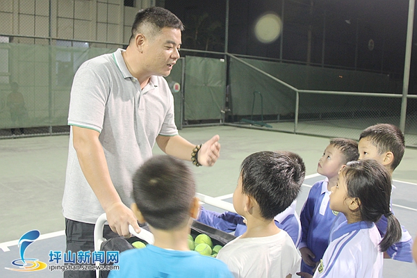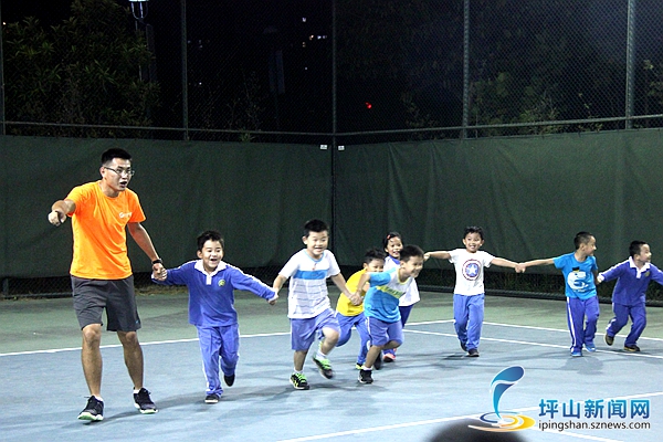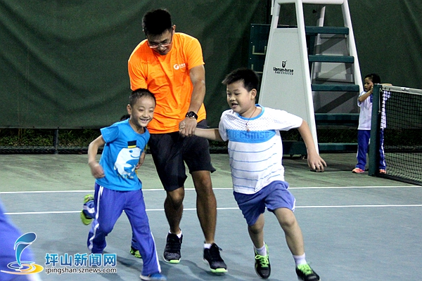 当天下午六点,30名坪山中小学生早早来到坪山新区大工业区体育场网球馆,在坪山网协和弘金地国际网球学院的教练带领下开始热身运动。捕鱼、耍猴、接力、追逐赛等围绕着网球元素进行的丰富多彩的游戏项目,让小朋友玩得满头大汗、不亦乐乎,整片球场充满着欢乐的笑声。据坪山网协负责人介绍,此次网球培训班的课程是坪山网协和弘金地国际网球学院合作开展的公益活动,此次公益培训班活动将持续展开,希望培养小朋友对网球的兴趣,感受网球运动的魅力与快乐,提升青少年体质。