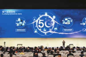 11月16日,世界互联网领先科技成果发布活动在乌镇举行。图为美国高通公司代表在介绍5G技术。 新华社 发