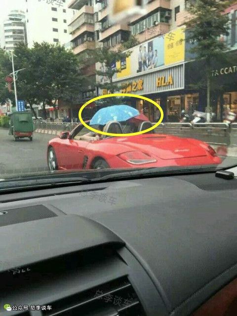 敞篷跑车也有尴尬的时候,晴天晒人,雨天淋人,不管是开跑车还是坐跑车,请自备雨伞。