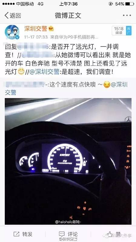 昨日晚间7点52分 @深圳交警在与姑娘喝完茶之后