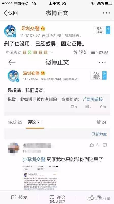 今天下午4点22分,深圳著名网红@深圳交警发出微博称:“#微博查违法#这位童鞋前几天外出,回来了!来吧,@深圳交警机动训练大队的蜀黍请你到#交警队喝茶#!说说吧,到底什么情况呢?”