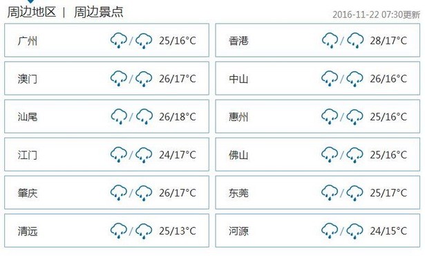 据气象局消息,21日深圳多云转阴天,光明新区出现零星小雨,铁坑水库站记录到0.3毫米的降雨;全市能见度较好,普遍在8-15公里。早晨全市大部分地区最低气温23-24℃,白天最高气温27-28℃;相对湿度75%-88%。