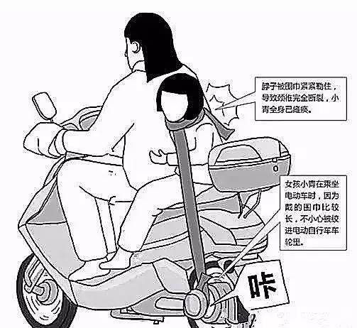 骑车的时间,佩戴围巾不要拖太长,也不要打死结,最好把围巾两端塞进衣服里。因为一旦围巾一端被拉扯,就会发生缠绞甚至有窒息的危险。乘坐电梯的时候也是一样要注意。