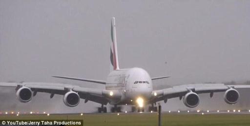 综合《每日邮报》《太阳报》报道,阿联酋航空公司的空客A380客机在抵达荷兰阿姆斯特丹希普霍尔机场时,由于遭遇强风暴几乎被迫横向着陆在跑道边上,而与此同时另外一架瑞士航空客机也因风暴未能落地。这一惊险的时刻被记录了下来。