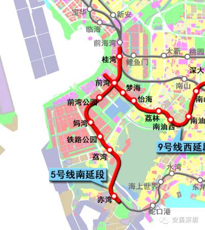 4、轨道5号线南延段:赤湾、荔湾、铁路公园、妈湾、前湾公园、前湾、桂湾;