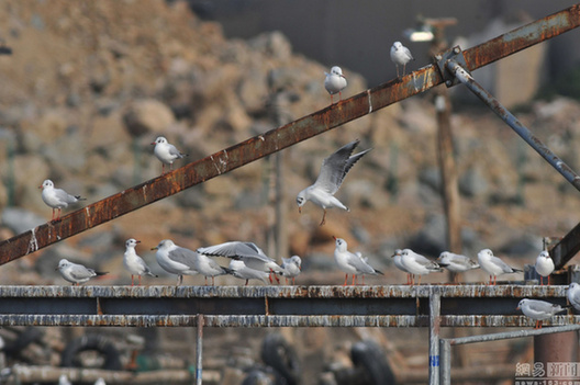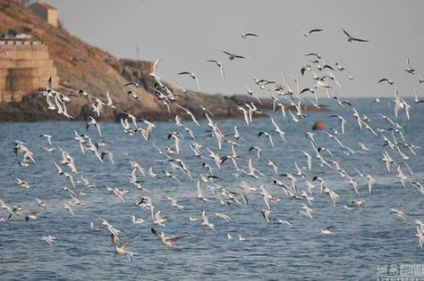 2016年11月23日,山东青岛,大批红嘴鸥集中在渔港附近越冬避寒。图片来源:视觉中国王海滨/视觉中国