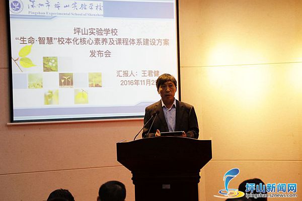 北京教育学院副院长、名校长领航班首席专家杨志成,北京教育学院校长研修学院院长、名校长领航班负责人胡淑云,广东佛山南海外国语学校校长、名校长领航班广东名校长工作室主持人黄新古,坪山新区公共事业局局长江国初、副局长李莹,坪山新区教育科学研究管理中心主任李显明以及来自全国八省市的校长、教师代表,深圳市中小学课程建设先进校校长、坪山新区各中小学校长、教师400余人出席会议。会上,坪山实验学校校长王君健发布了《深圳市坪山区坪山实验学校“生命·智慧”课程体系建设方案(试行)》,标志着该校课程改革进入全新领域。与会专家表示,在今年9月我国学生发展核心素养体系正式发布的背景下,坪山实验学校发布的课程体系目标导向清晰,结构合理完善,为全国众多兄弟学校课程体系建构提供了一个非常好的范本。