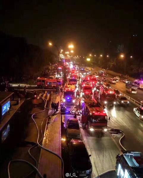 火势仍很大,熊熊烈焰照亮了一片天空,烈火下的人们拖着行李、扶着亲人、安慰着朋友,往四周散去。
