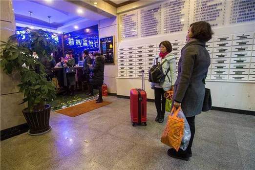 东门大厦这边有两个酒店:东门宾馆和布丁酒店。晚上8点多,住客都被叫起来。“宾馆把我们赶下来了,说火势太大,怕蔓延过来。”布丁酒店一个年轻女孩蹲在大门旁边,呆呆地看着来来往往的行人。她实在无聊,便抽起了烟。图为紧邻火场的一家宾馆,住客纷纷退房离开。