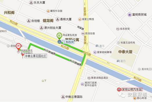 5.从龙岗出发:龙翔大道—龙大高速—公常路—公明南环大道—松白路—翠湖酒店对面(安居型商品房营销中心)