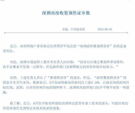 “短期看,对项目价格上的严格审批不会放松,有利于合理控制深圳价格的快速上涨,有效引导市场预期。近期新房二手房成交依然维持低迷,虽然上周访客量有小幅上升,但客户基本保持观望态势,形成有效成交的难度较大,客户对价格的抗性依然较大,而且从实际成交和深圳中原报价指数的情况来看,短期内这种市场观望情绪会保持较长一段时间。”