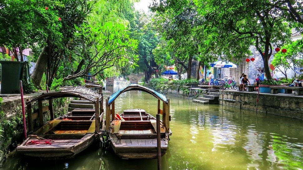 杏坛镇的逢简古村,素有“顺德周庄”美称,村落建筑沿河而建,沿河修筑石磡,长达十余公里,河边树木夹岸。古村四面环水,古风犹存,是典型的小桥流水人家。
