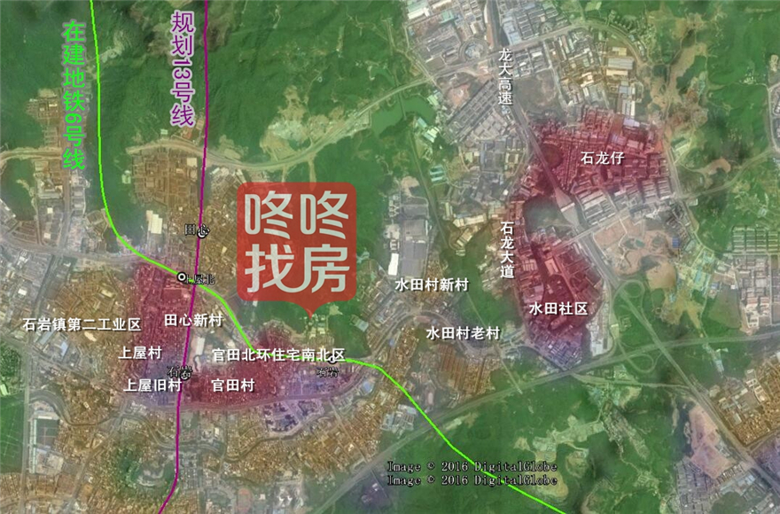 石岩:在建地铁6号线上屋北站点周边的田心、上屋村以及旧工业区部分、龙大高速旁边水田社区和石龙仔。