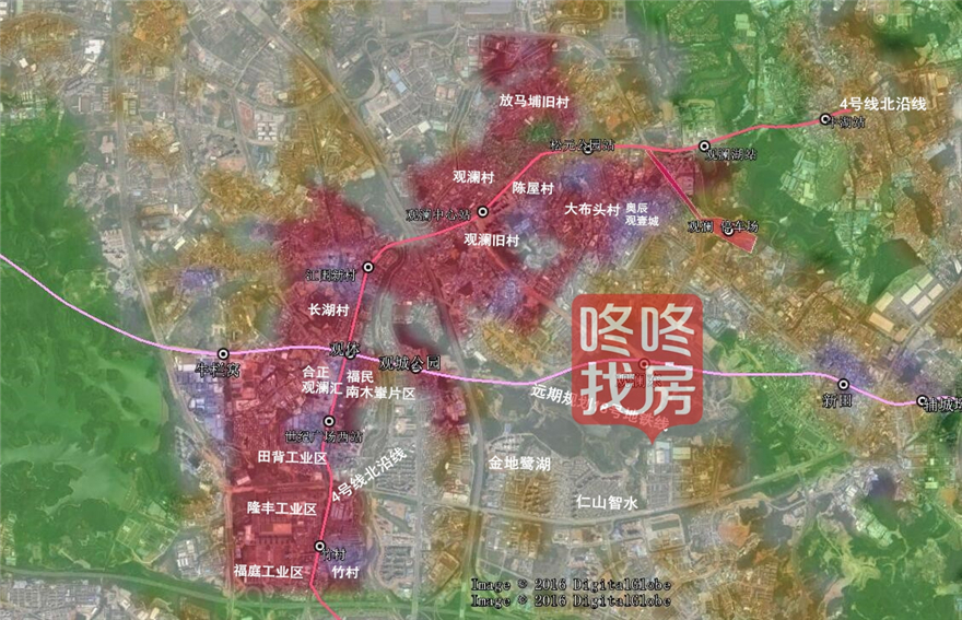 观澜:从龙华单列出来,图示言四号线延长线站点周边都是优先拆除重建区。