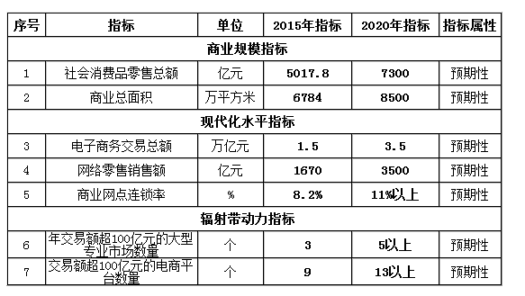 ——商业网点的对外辐射能力进一步增强。到2020年,有5个以上年交易额超100亿元的大型专业市场,13个以上交易额超100亿元的电子商务平台。