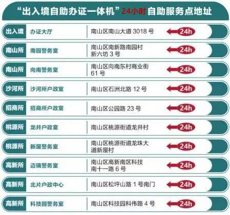 除此之外,南山下面这几个服务点,也是有自助办证机提供24小时随时办理的!