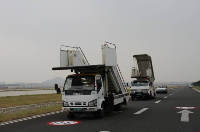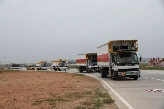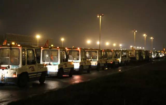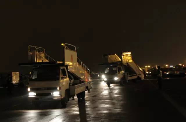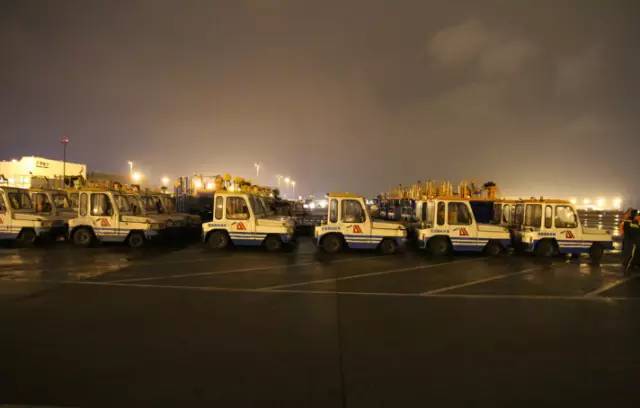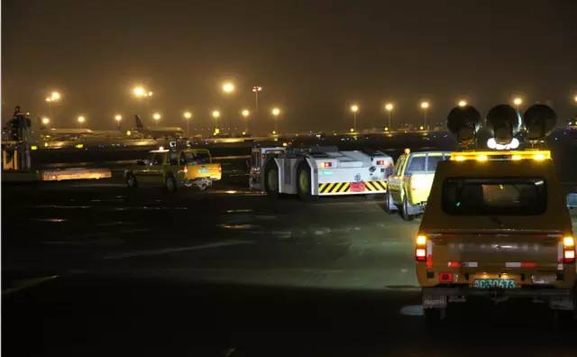 21时30分左右,特种车开始转场,飞行区内也出现了难得一见的“大摆车龙”景象。