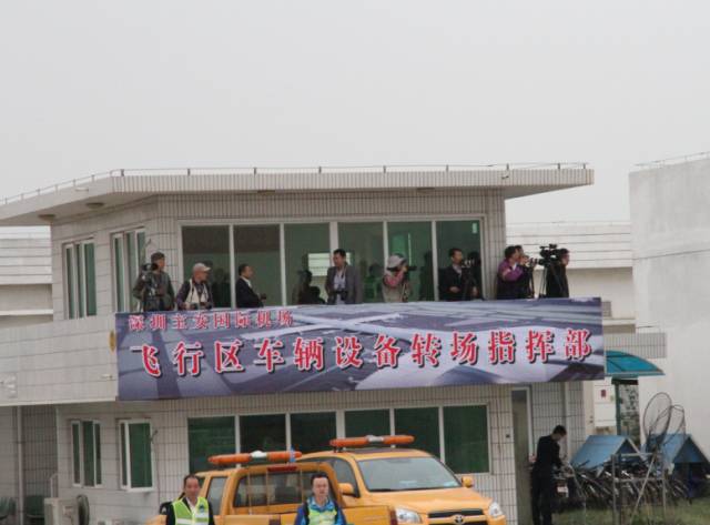 飞行区车辆设备转场指挥部小楼当天也成了“炮楼”,各种“长枪短炮”在此记录转场。