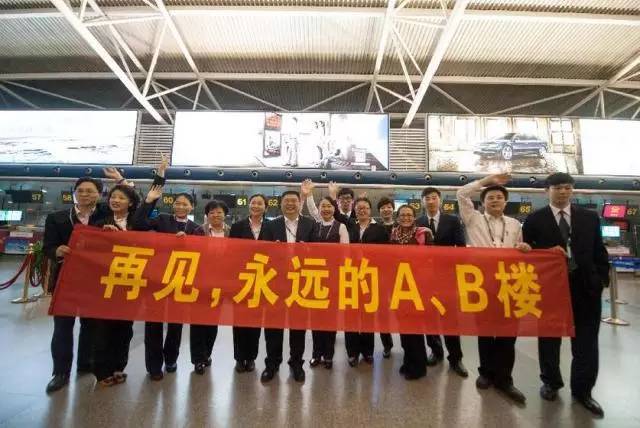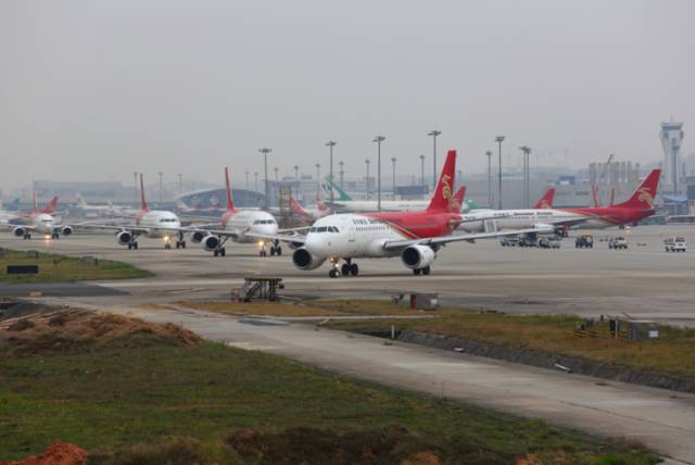 航空器大规模自滑转场开始,航空器整齐划一地排队滑行至新航站楼指定机位。