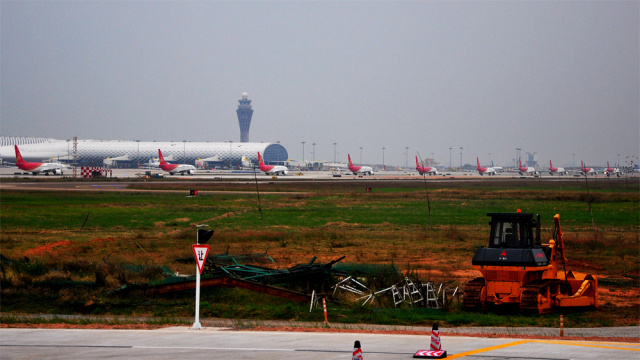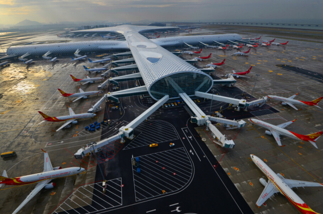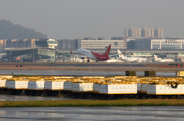 经过一夜雨水冲刷,11月28日清晨蔚蓝的天空碧波如洗,这个注定将载入深圳机场历史的重要一天也有了一个完美的开始。