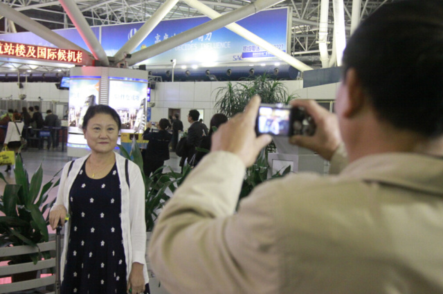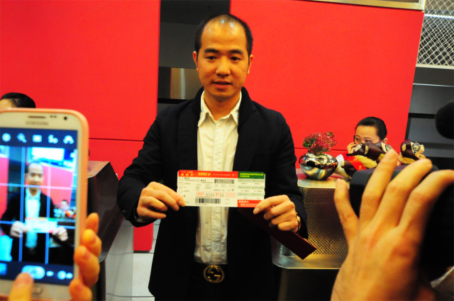 首航航班旅客开始登机,喜悦与兴奋写在每个人的脸上。