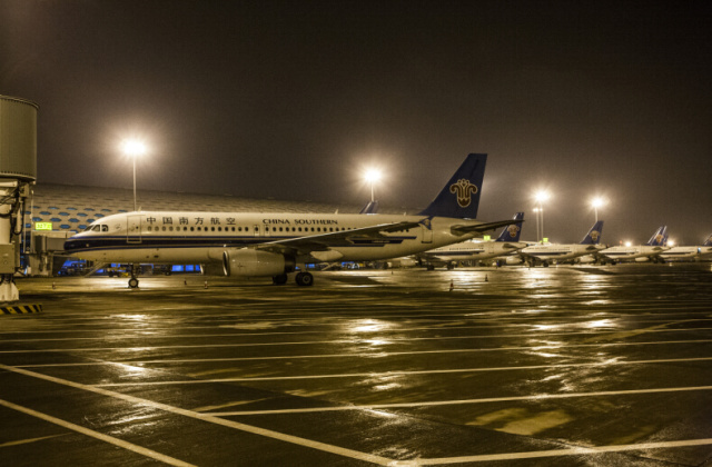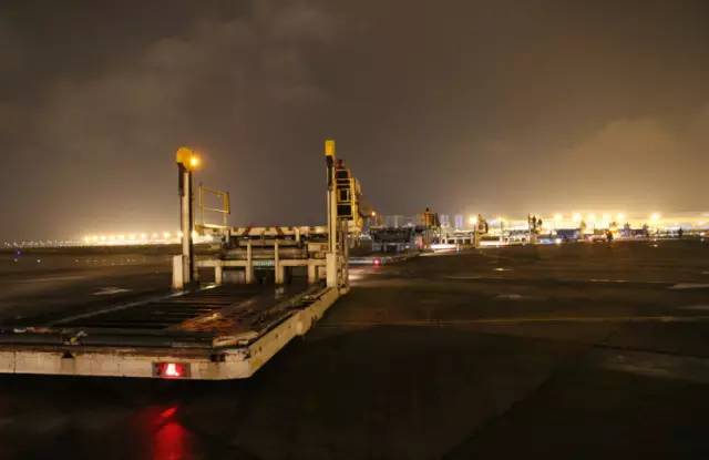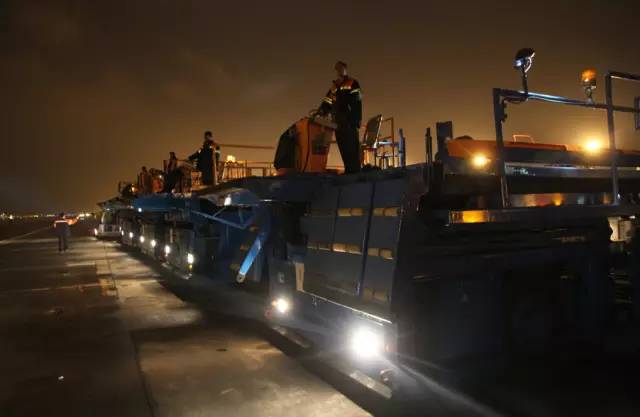 22时40分左右,跑道关闭,平台车等大型特种车辆穿越跑道开始转场。