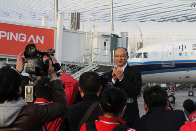 7:51分,在参加启用仪式现场嘉宾的共同见证下,首个出港航班起飞。