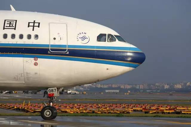 在众人挥手告别中,滑向跑道尽头,准备起飞。