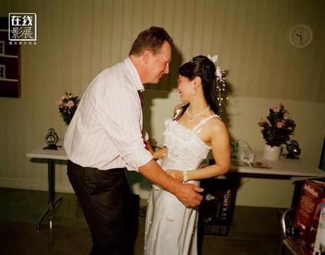 在Elin Berge的项目中,每一对夫妻的情况都不一样,有老夫老妻,也有年轻情侣,很难一下看清楚这些情侣之间的强弱关系。图为Phi和Leif在婚礼上跳舞,瑞典Vannas市,2008年。Phi在她姐姐与一个瑞典人的婚礼上遇见的Leif。