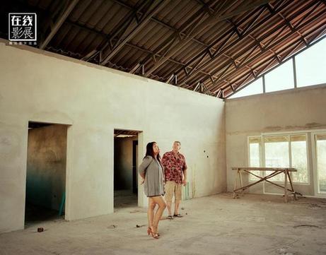 一次偶然的机会,Elin Berge遇到一个泰国和尚,他说他发现一处绝佳的寺庙营造地,Elin就跟他一起去了那里。正是在那个小村子,Elin第一次遇到了这些泰国女性。Elin看到的是一群生机盎然,充满活力,正在同心协力建造寺庙的女性。这一切远远超出了Elin的认知,因此,就在那一刻,她们在Elin Berge的眼中不再仅仅是受害者的形象了,她们是鲜活真实的现代泰国女性。图为一位泰国和尚拜访Peter和Chittata,泰国Kaeng Khro市,2012年。