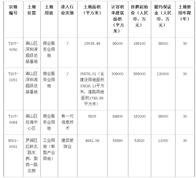而进入12月,深圳共24宗地块出让。深圳将于12月26日以挂牌方式公开出让4宗地的使用权,总积61881余平方米,起拍价共计101.772亿元。 其中2宗位于深圳湾超级总部基地,后海总部基地和罗湖红岭各一宗。