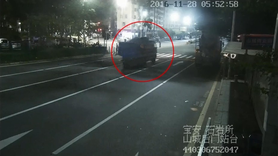 事情要从11月28日清晨5点53分说起,深圳洲石路石岩物流园路段,一辆大货车与一辆自行车猛然相撞,自行车上的大姐倒地不起,而大货车司机却一溜烟跑了。