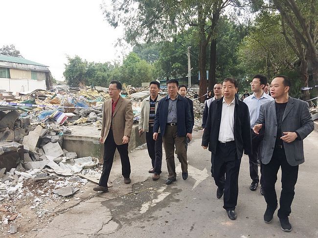 福田区委书记肖亚非、副区长黄伟近日视察花卉世界拆违现场。