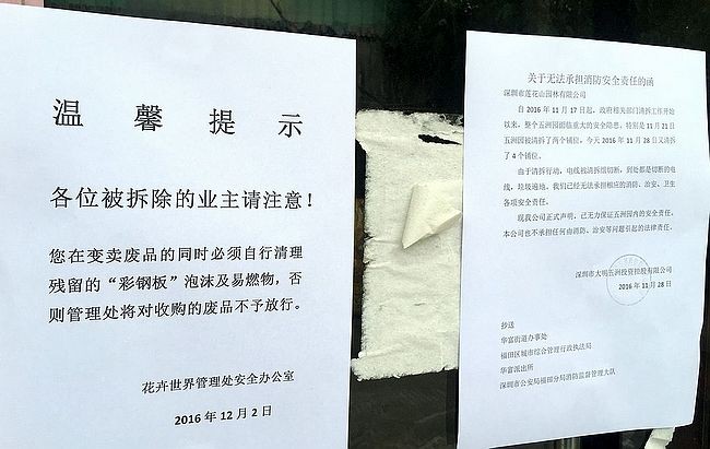 整治迫在眉睫。福田区各部门联合于11月17日开始整治拆除花卉世界内存在安全隐患的违建,由消防对于隐患商户先期查封,通知商家期限内自拆,自拆未完成再进行强制性拆除。