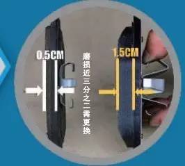 李先生说,刹车片的厚度一般在1.5cm左右,随着使用中不断摩擦,厚度会逐渐变薄。当观察刹车片厚度已经仅剩原先1/3厚度(约0.5cm)左右时,就要更换了。