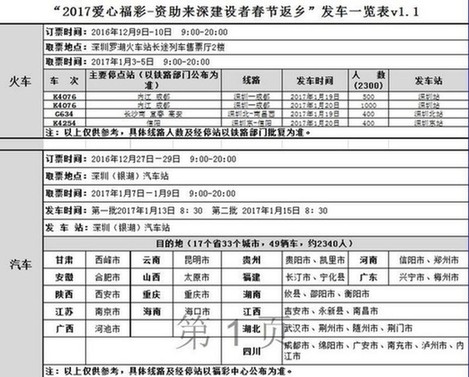 深圳市福利彩票发行中心将第十一次开展“2017爱心福彩——资助来深建设者春节返乡”公益活动。活动将送出4640张免费车票,其中火车票2300张,汽车票2340张,资助来深建设者春节返乡。该活动分两批次订票,火车票、汽车票订票分两个时段进行。