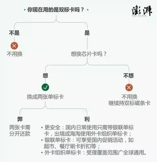 4、小编了解到,此前发行的双标卡为磁条卡,容易被盗刷或复制,在国外曾出现过不少盗刷案例。由于磁条卡存在安全隐患,未来发行的单标卡将升级为芯片卡。