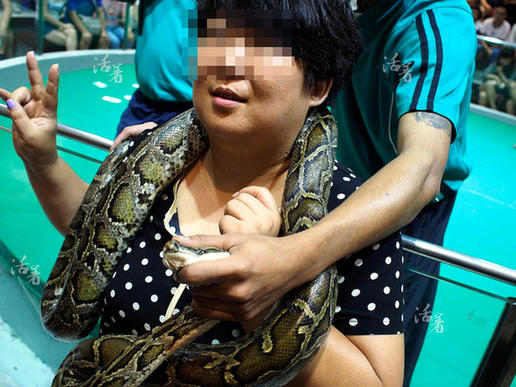 在泰国“皇家” 蛇药研究所,游客被带进各个小房间,由专业人员讲解各种蛇药的疗效,然后是蛇表演、与蛇共舞,与蛇留影。