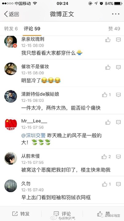早晚温差很大 深圳人穿衣服要“可攻可守”