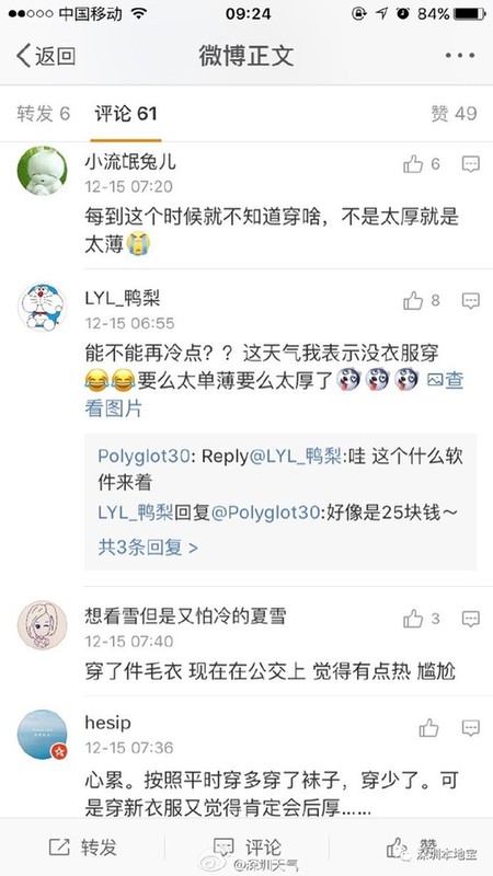 小编刷微博,看见有人给天气君留言说: