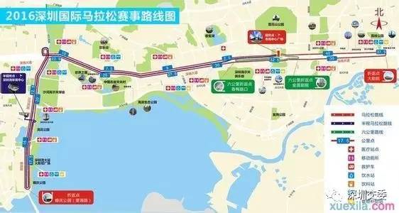 市民中心(起点)一深南大道(北侧西行)一沙河西路(西侧南行)一望海路(深圳湾婚庆公园折返一沙河西路(东侧北行)一海德三道(南侧西行)一深圳湾体育中心(终点)