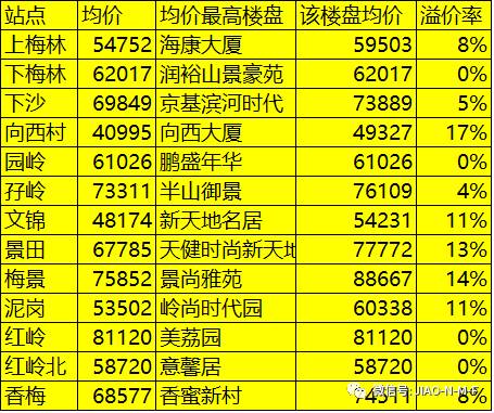各站点挂牌价高于均价的楼盘(12月)