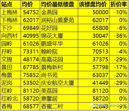 各站点挂牌价低于均价的楼盘(12月)