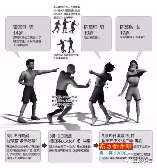 涉案年龄最小的蔡某佳,年仅14岁,系深圳某公立中学初三学生,家庭富裕,而作案动机只因为一个女孩争风吃醋。