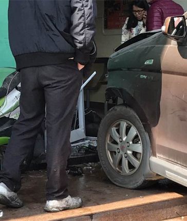 据现场目击者介绍,当时肇事车辆从店门前的临时停车区域突然冲上店前的台阶,将原本在店门外的伤者撞进店内。参与救援的黄先生告诉记者,当时伤者的右小腿撕裂开一条口子,躺倒在地上呻吟。