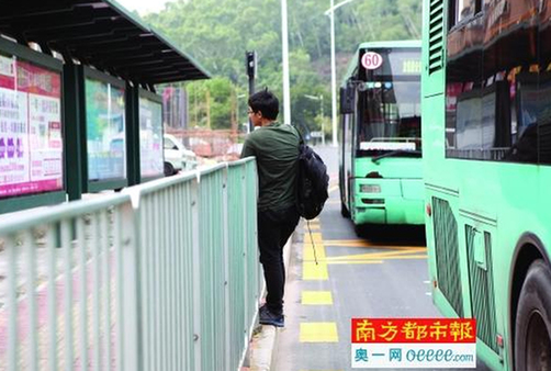 今天(12月20日)上午8点28分,网友冯先生向“快报料”微信号报料称,深圳市南山区豪方现代豪园公交站被人行道护栏与马路“隔离”,乘客只能隔着护栏等公交,车来了要再走十几米的距离绕过护栏坐车。要是你急着赶公交,或者公交停一下就跑,你想赶上估计得学刘翔。