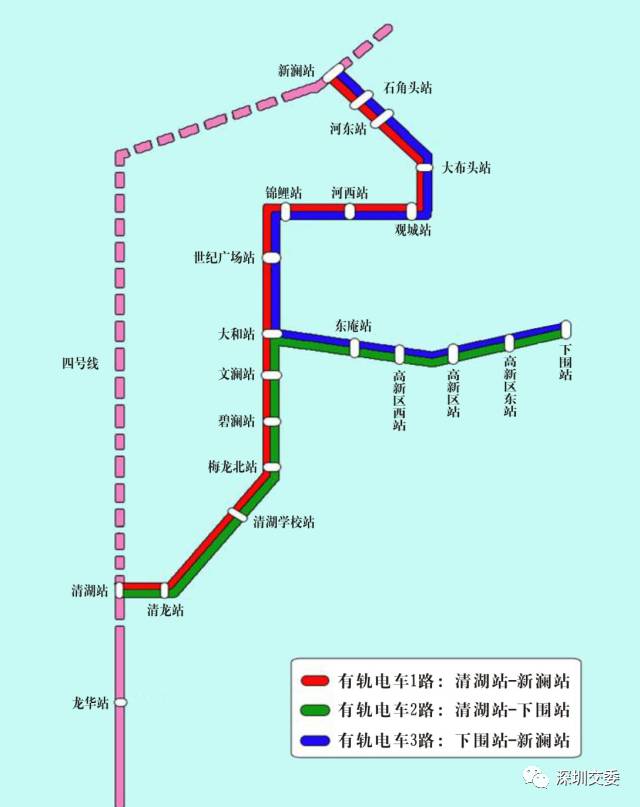 3路:下围站—新澜站,运营里程7.9km,运行时间约20分钟。3路车为联系观澜科技园与观澜老城区的主要通道。